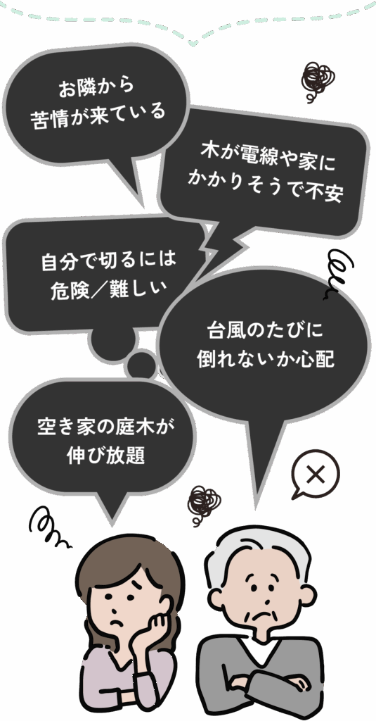 電線にかかりそうだった木を安全に伐採してもらい、周囲の家や電線に気を配ってくださり、安心しました。